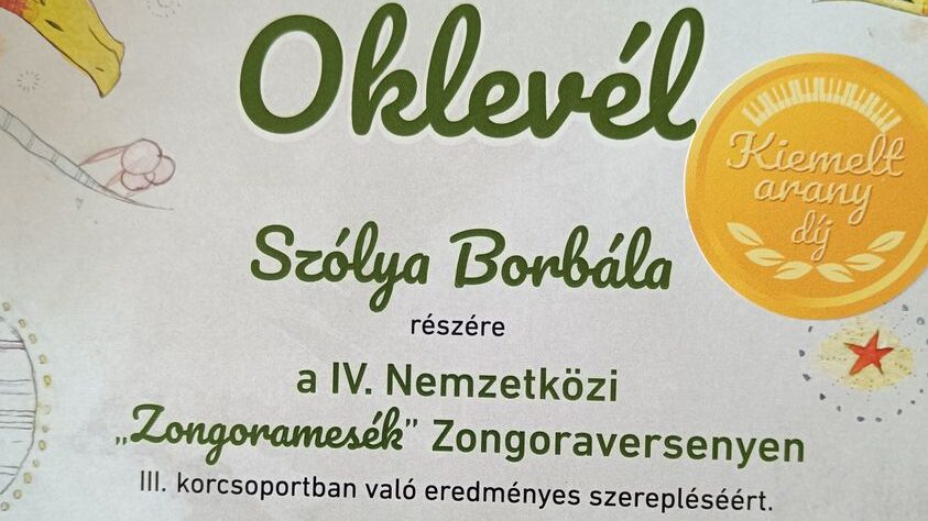 Kiemelt arany díjban részesült Szólya Borbála, a Balázs Árpád Alapfokú Művészeti Iskola növendéke, a Batthyány Lajos Általános Iskola 5. z osztály tanulója.
